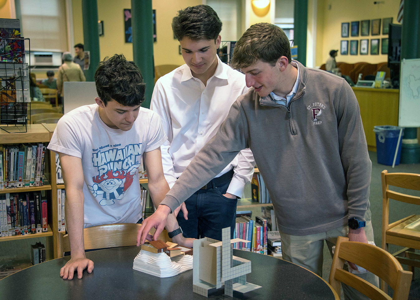 Prep’s Annual Student Art Exhibit welcomed the Saint Peter’s community to our Library on Sunday, May 5 to show off the accomplished creative work of our fine arts students. With exhibits spanning a variety of artistic media—from painting, to architecture, to graphic design, to sculpture, and beyond—our Marauders’ array of talents were on full display.